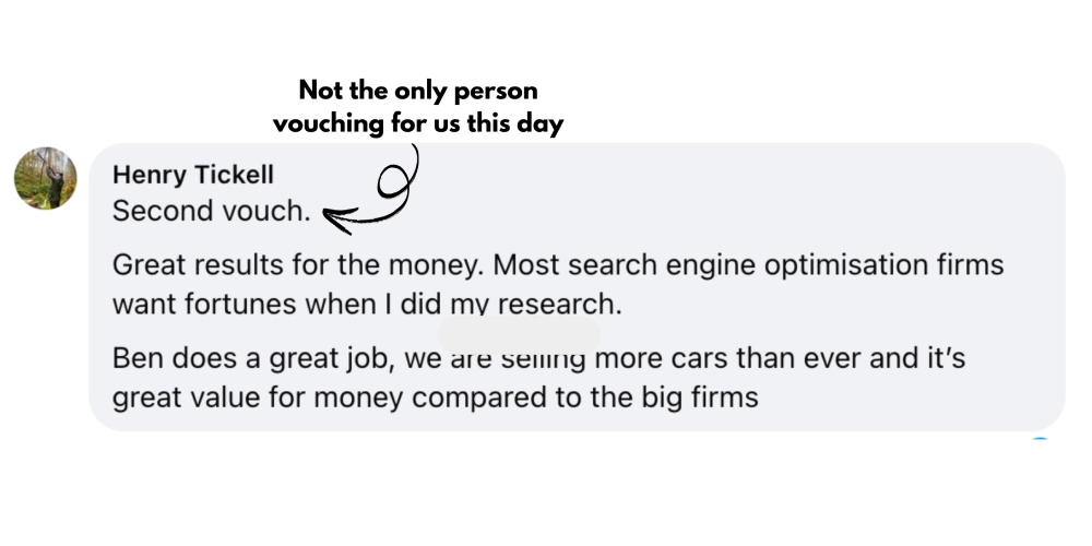 No ethical provider can promise #1. But I personally ensure your dealership’s visibility improves significantly, bringing more local enquiries and better-quality buyers although of course with continued work our aim is to maximise your number one and top 3 positions over vital search terms.